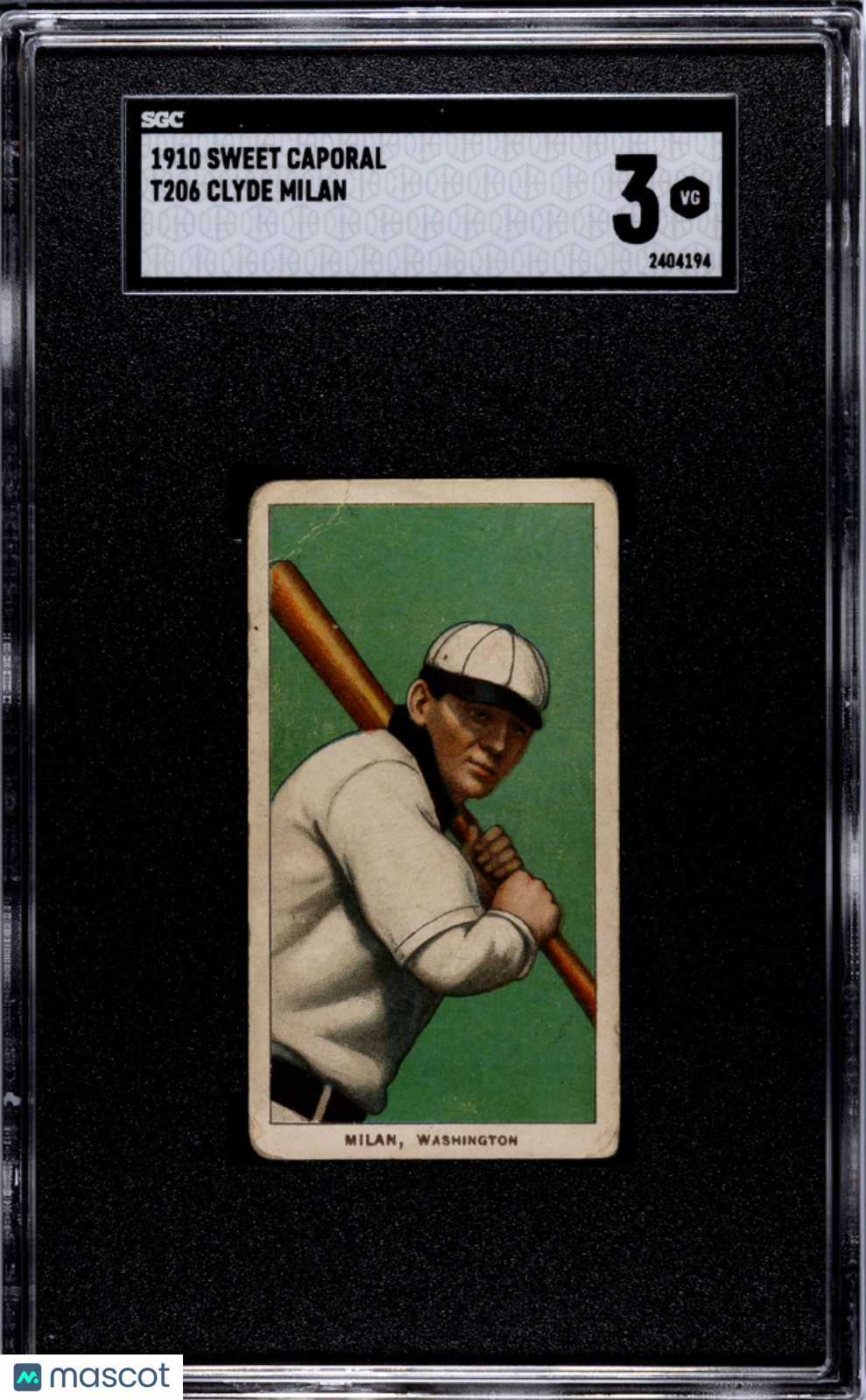 You are purchasing a 1910 Sweet Caporal (T206) Clyde Milan SGC 3. You will receive the exact item in the... Read more