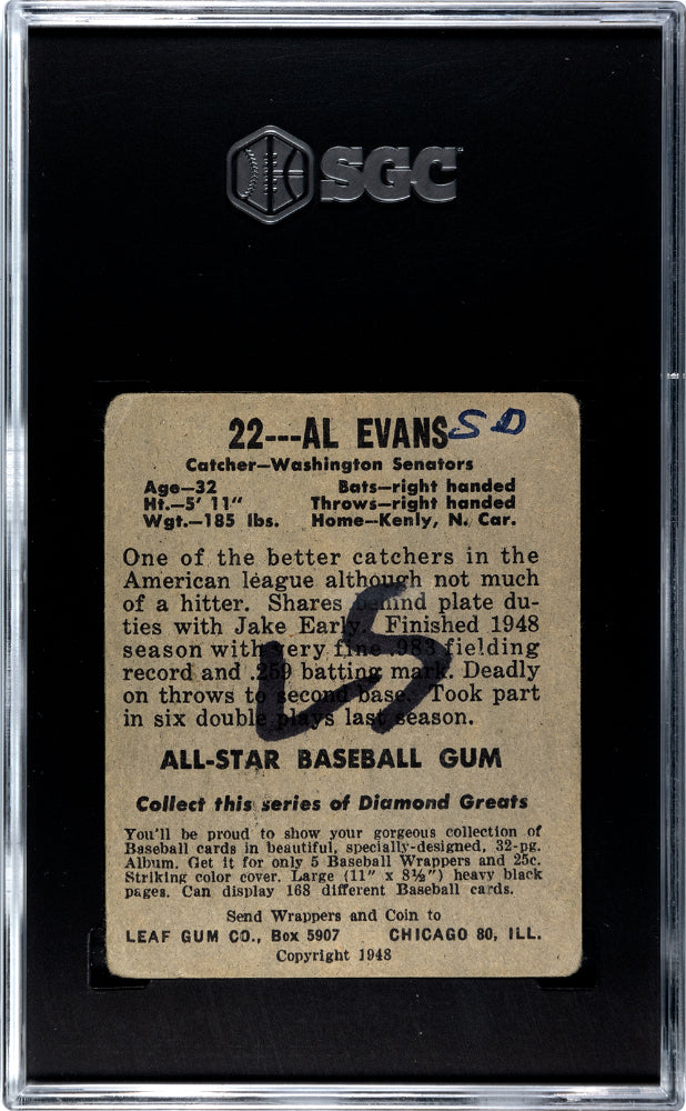 1948-49 Leaf Gum Co. Al Evans #22 SGC 1