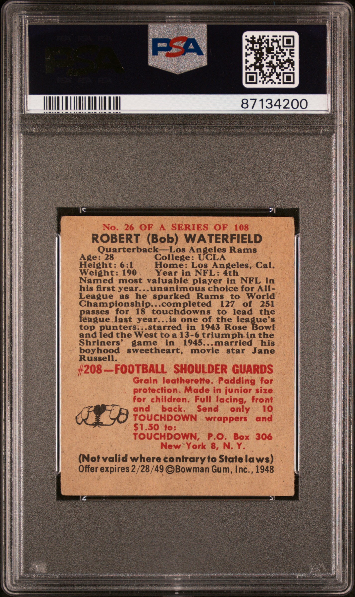 You are purchasing a 1948 Bowman Bob Waterfield #26 PSA 4. You will receive the exact item in the photographs.... Read more