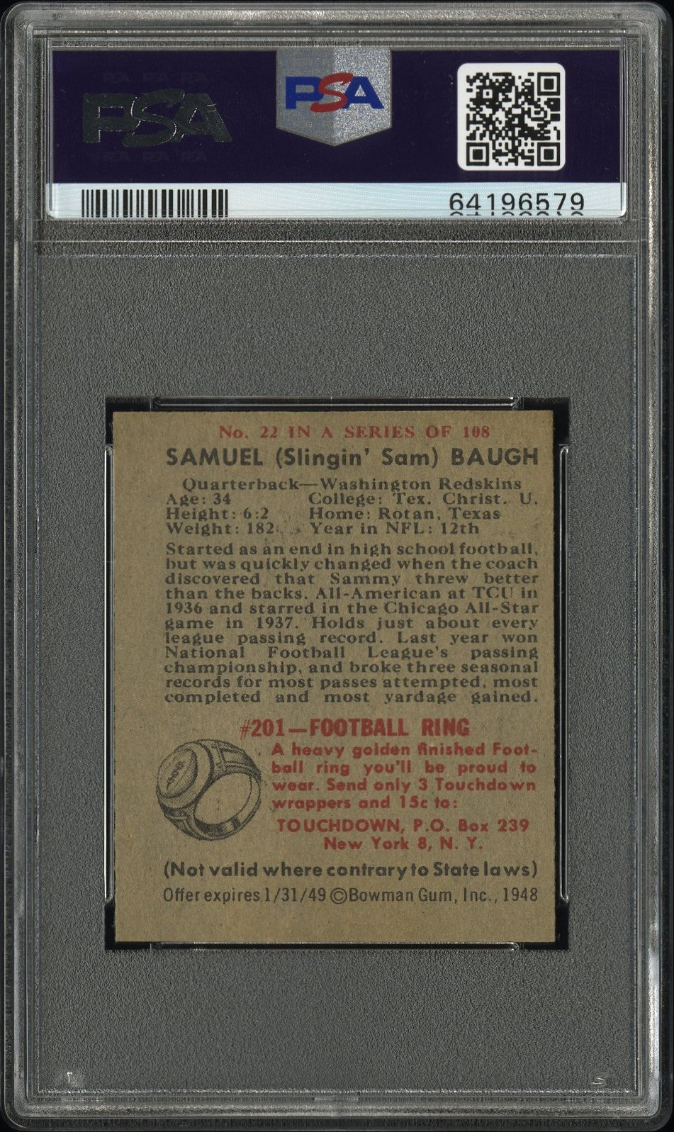 You are purchasing a 1948 Bowman Sammy Baugh #22 PSA 6. You will receive the exact item in the photographs.... Read more
