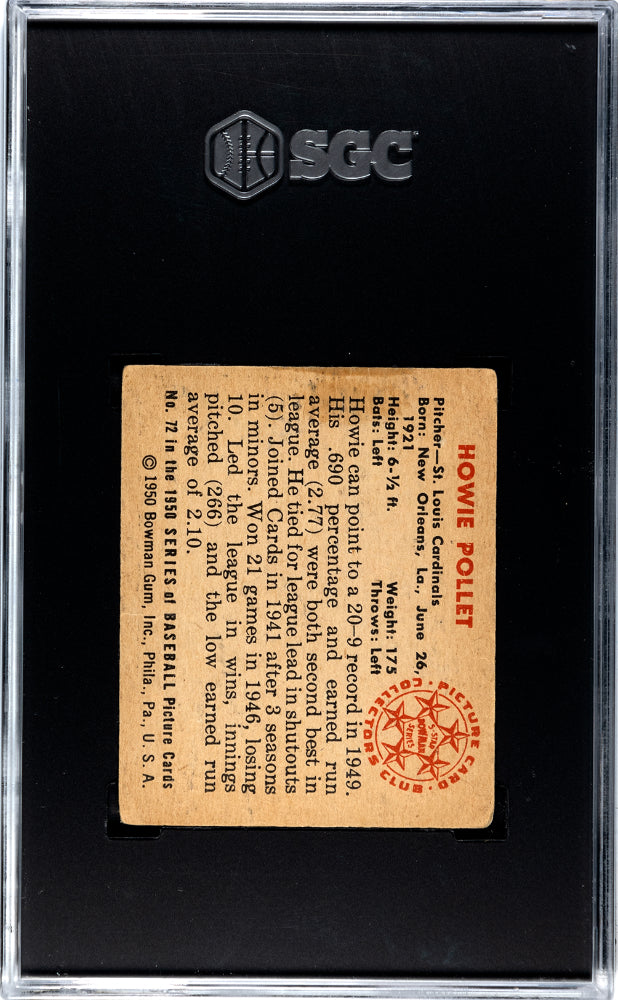 1950 Bowman Howie Pollet #72 SGC 1.5
