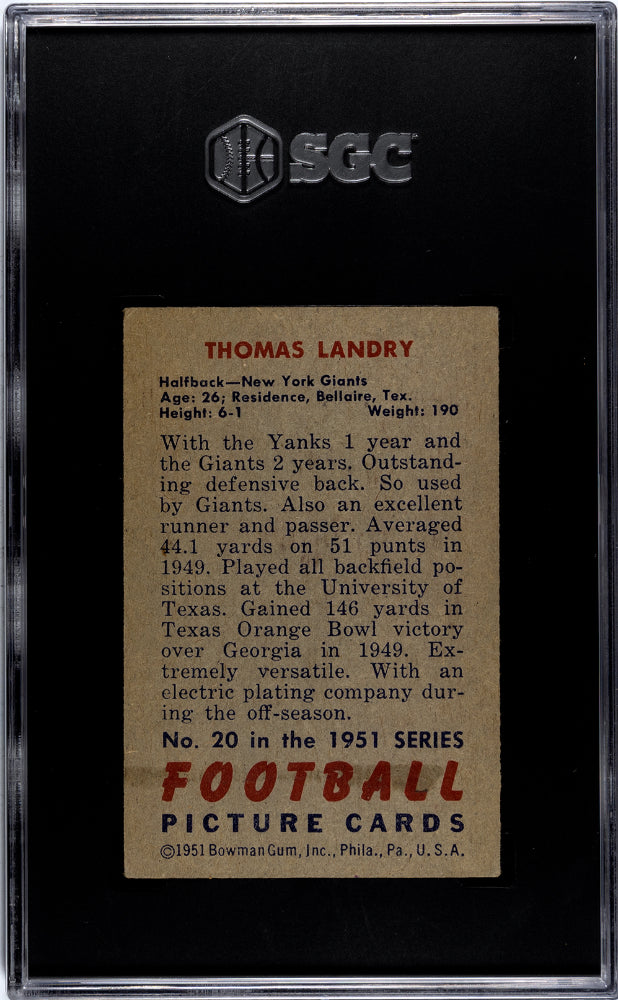 1951 Bowman Thomas Landry #20 SGC 1.5