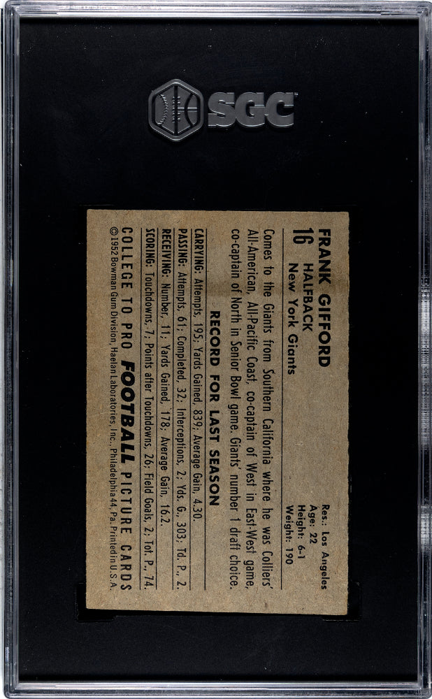 1952 Bowman Small Frank Gifford #16 SGC 5