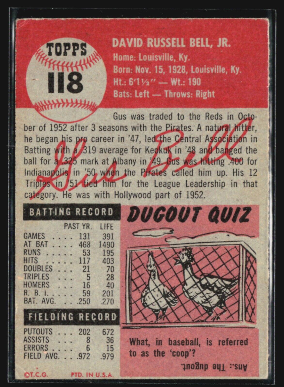 1953 Topps - #118 Gus Bell