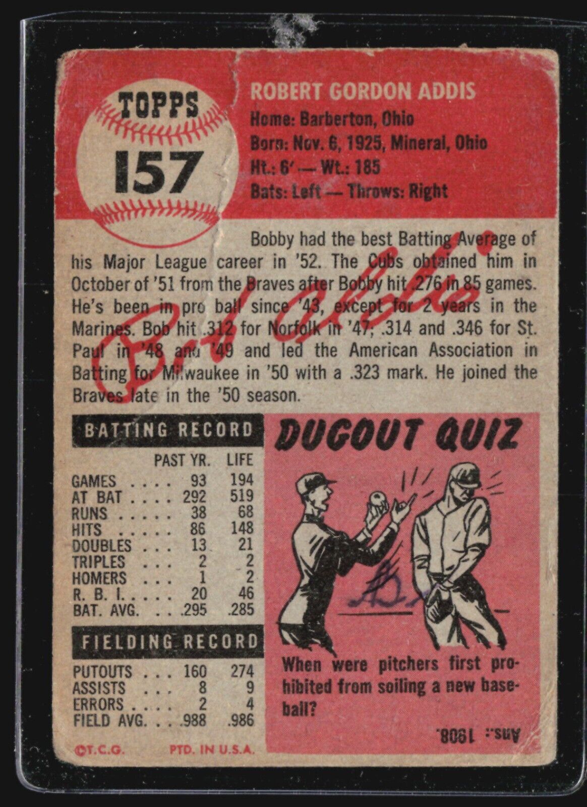 1953 Topps - #157 Bob Addis