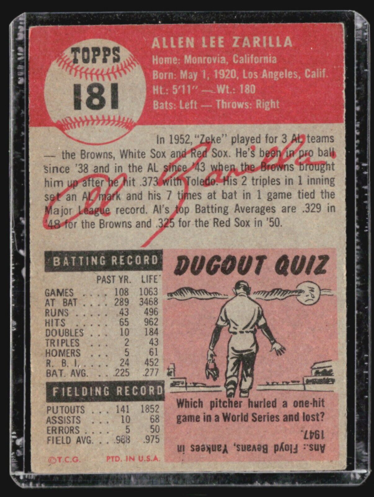 1953 Topps - #181 Al Zarilla