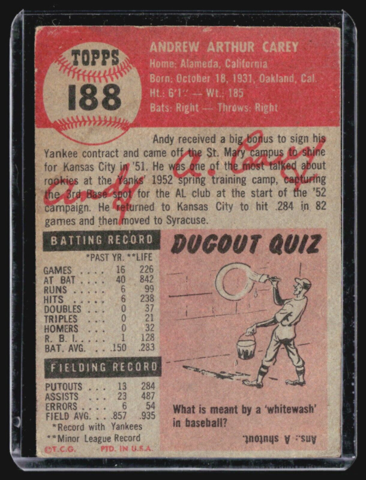 1953 Topps - #188 Andy Carey (RC)