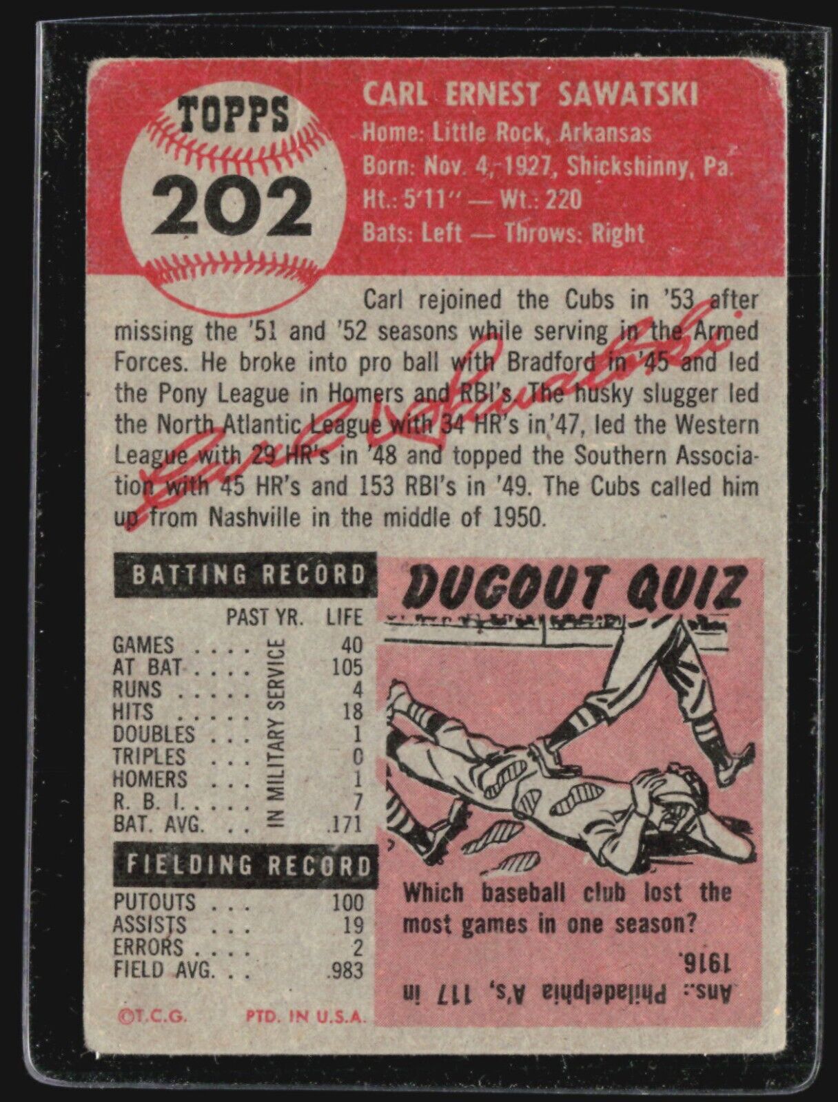 1953 Topps - #202 Carl Sawatski (RC)