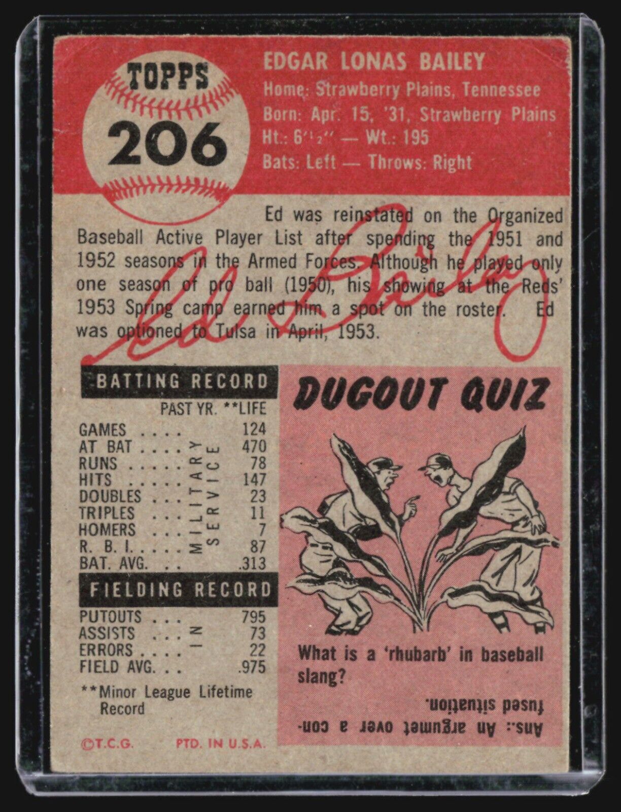 1953 Topps - #206 Ed Bailey (RC)