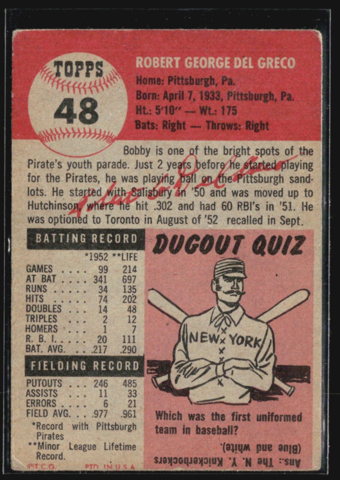1953 Topps - #48 Bob Del Greco