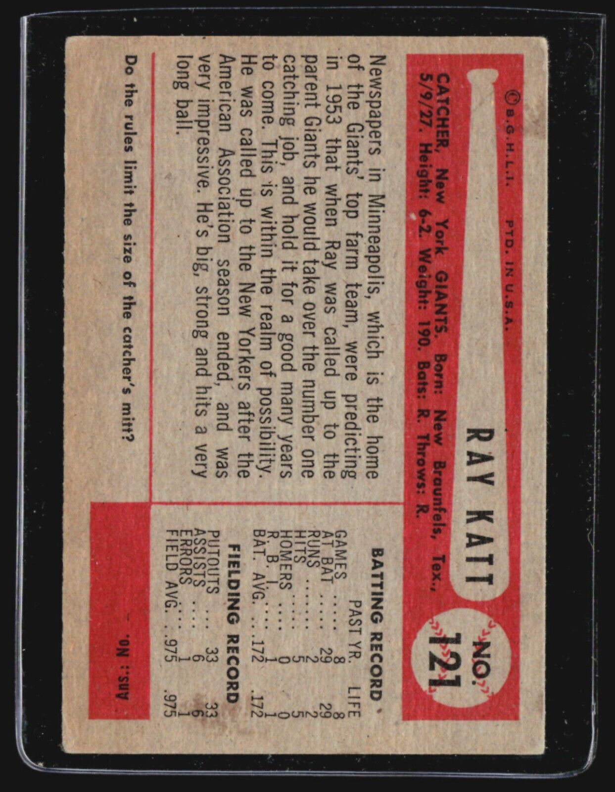 1954 Bowman - #121 Ray Katt (RC)