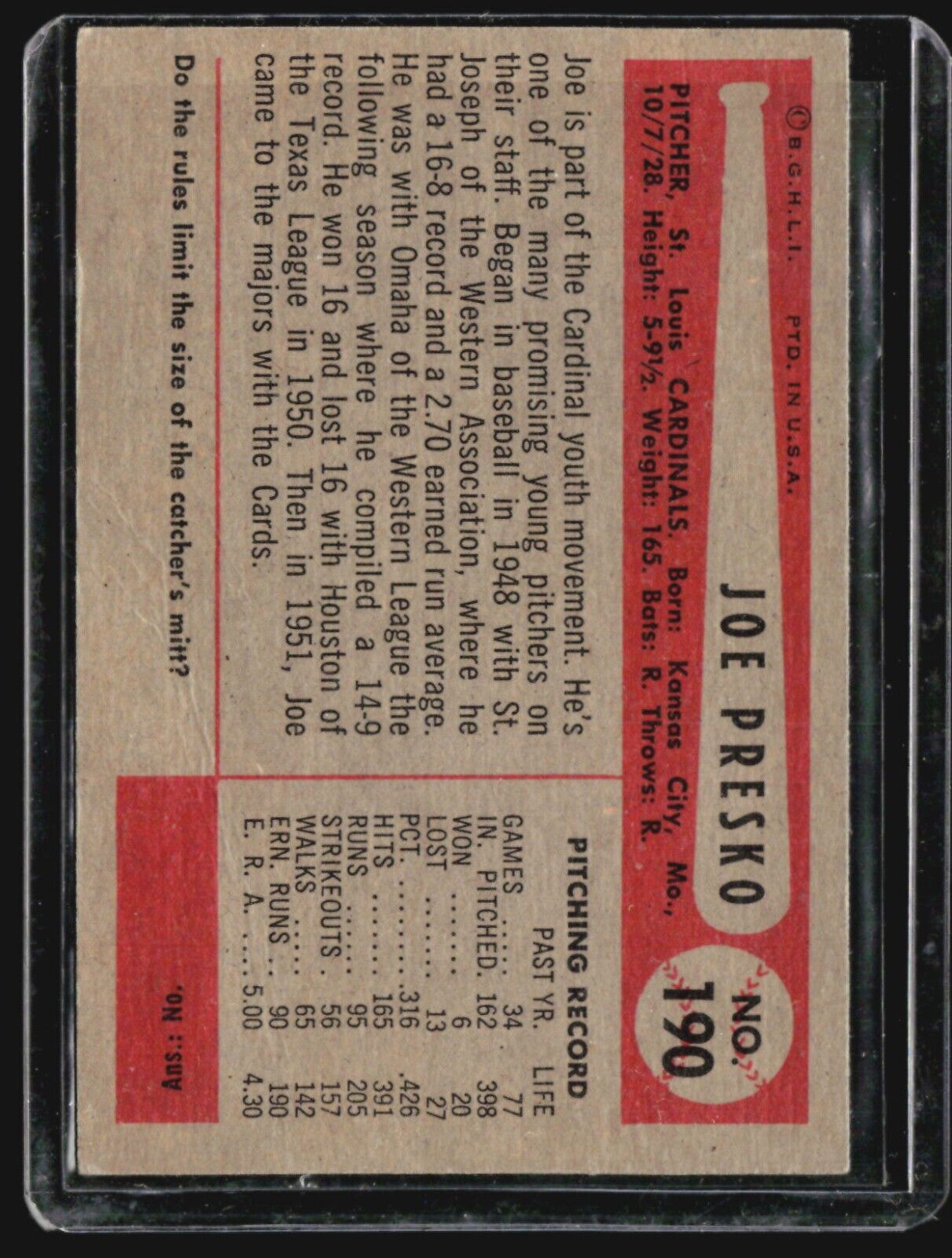 1954 Bowman - #190 Joe Presko