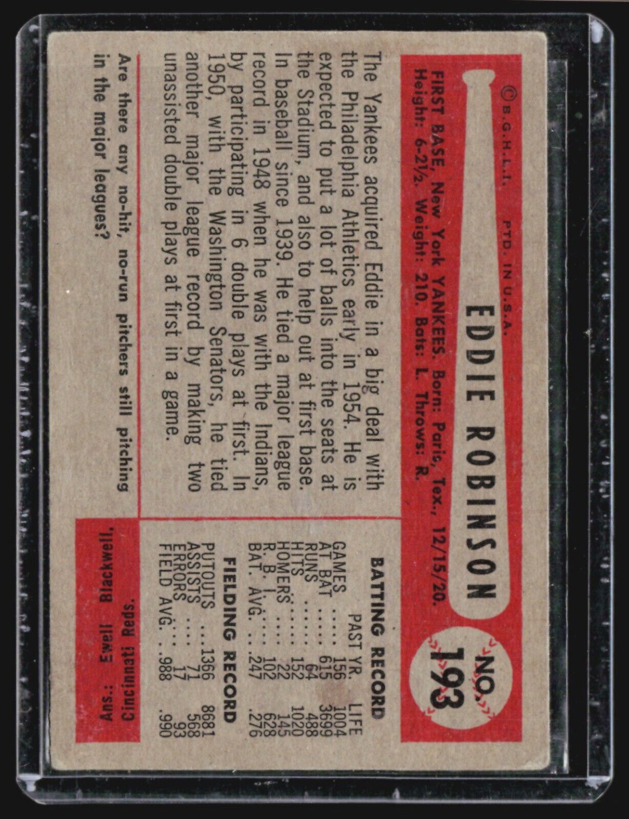 1954 Bowman - #193 Eddie Robinson