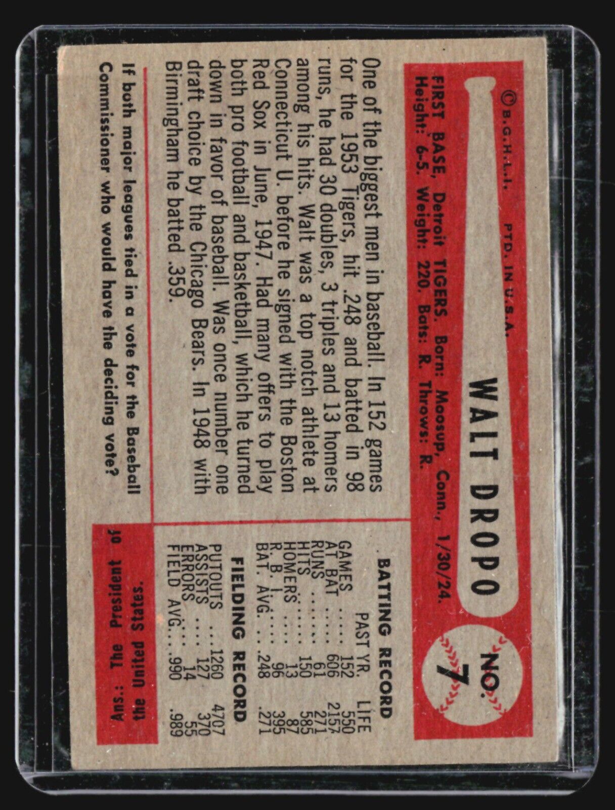 1954 Bowman - #7 Walt Dropo