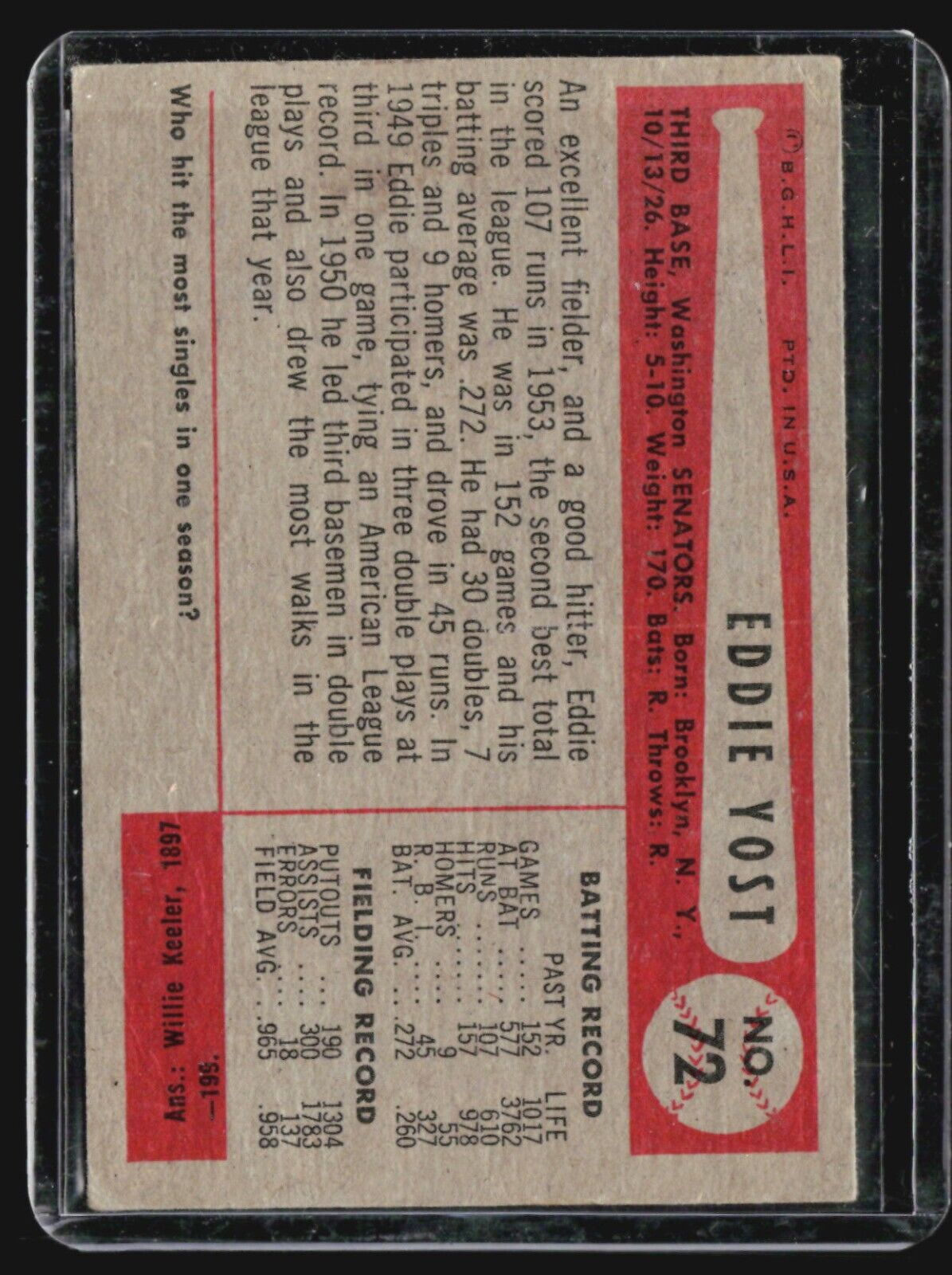 1954 Bowman - #72 Eddie Yost