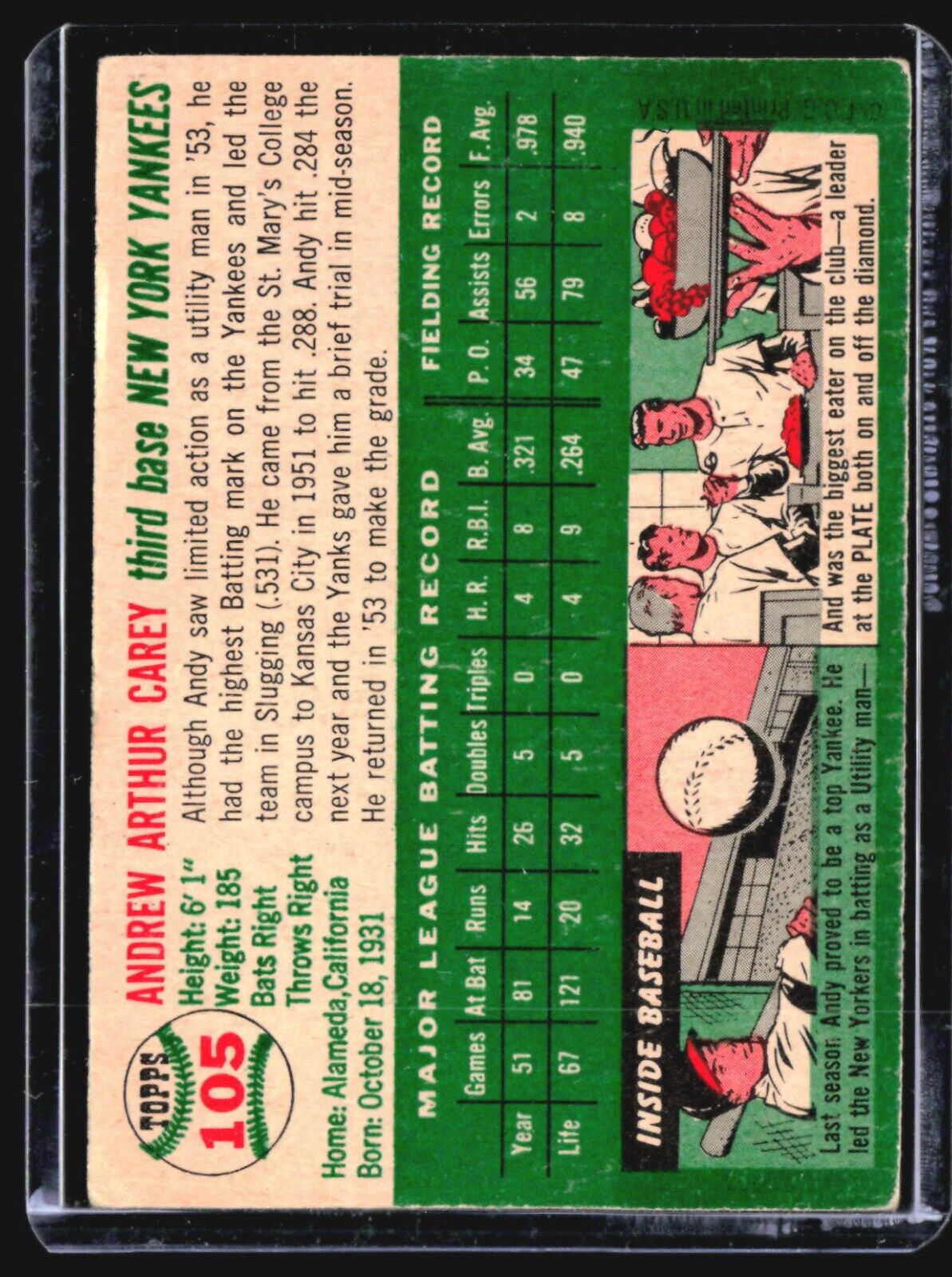 1954 Topps - #105 Andy Carey
