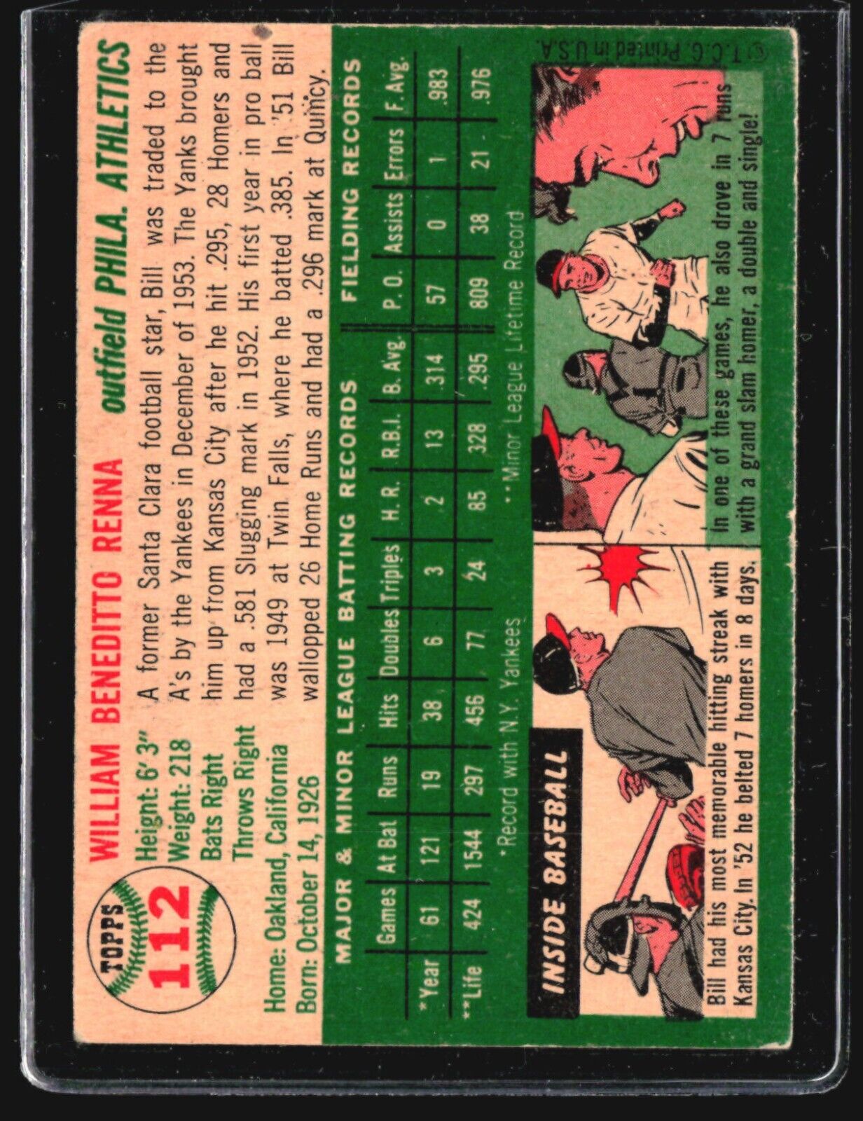 1954 Topps - #112 Bill Renna (RC)