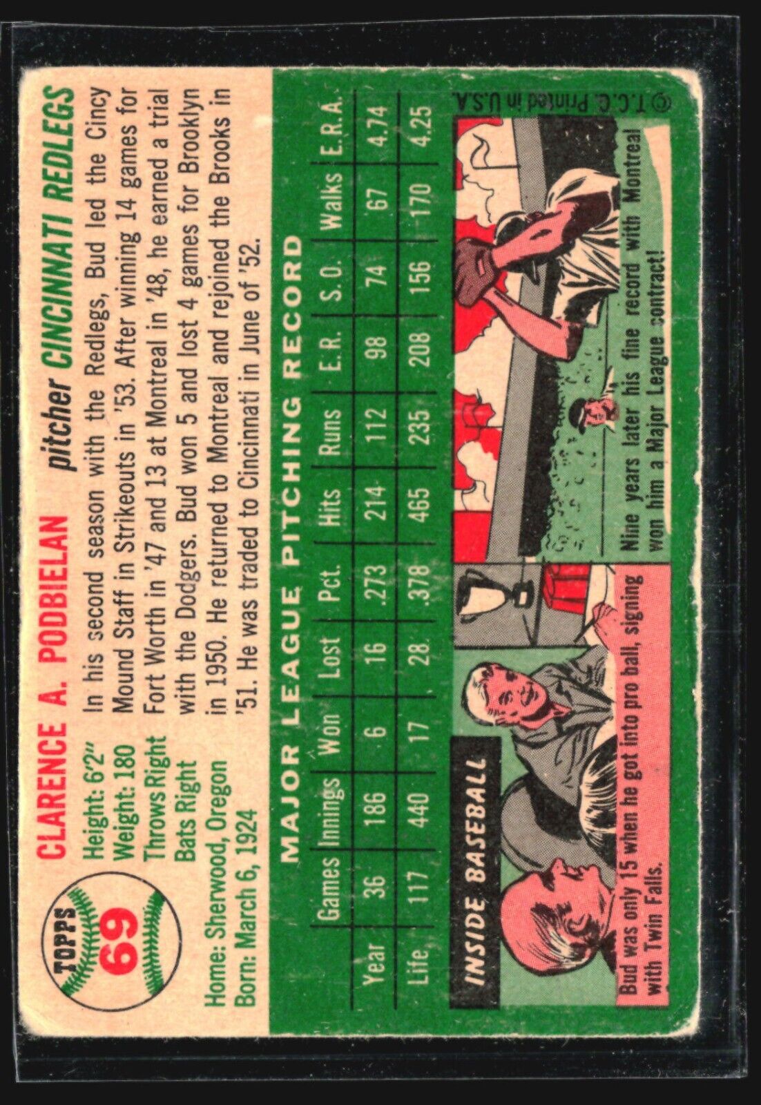 1954 Topps - #69 Bud Podbielan