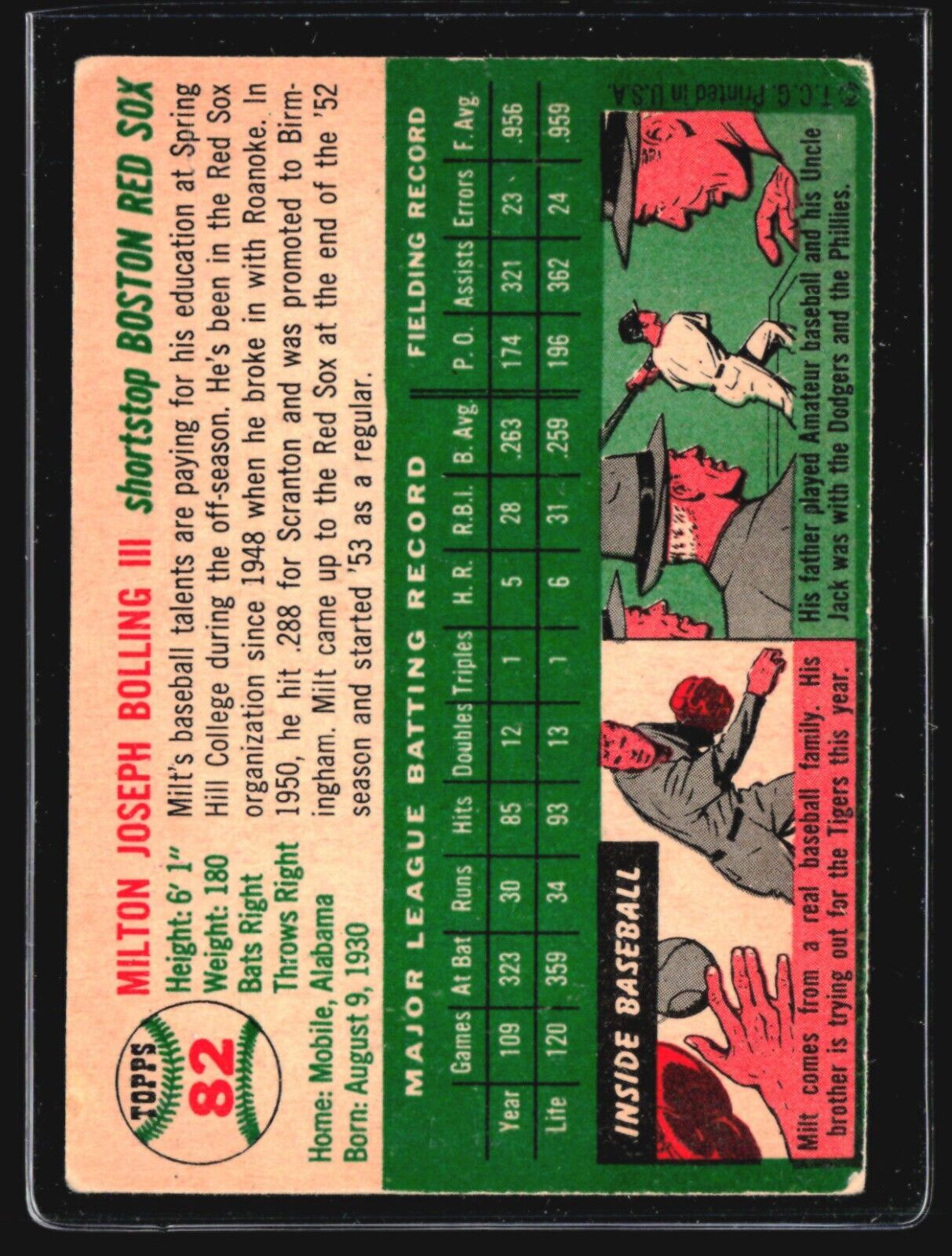 1954 Topps - #82 Milt Bolling