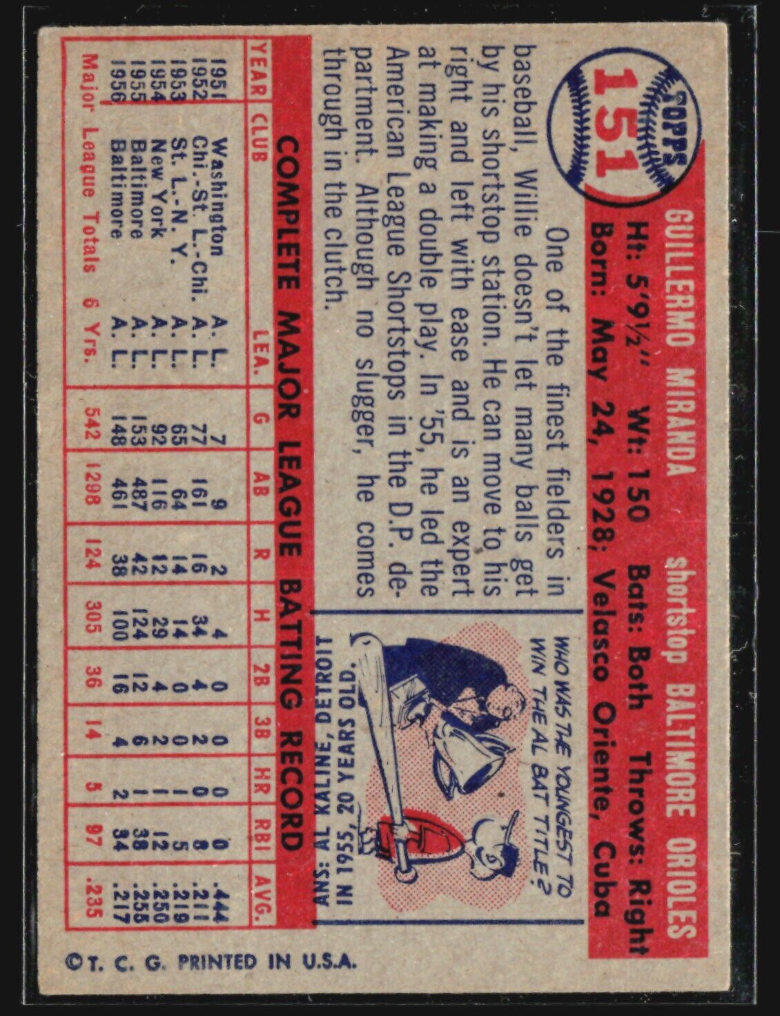 1957 Topps - #151 Willy Miranda