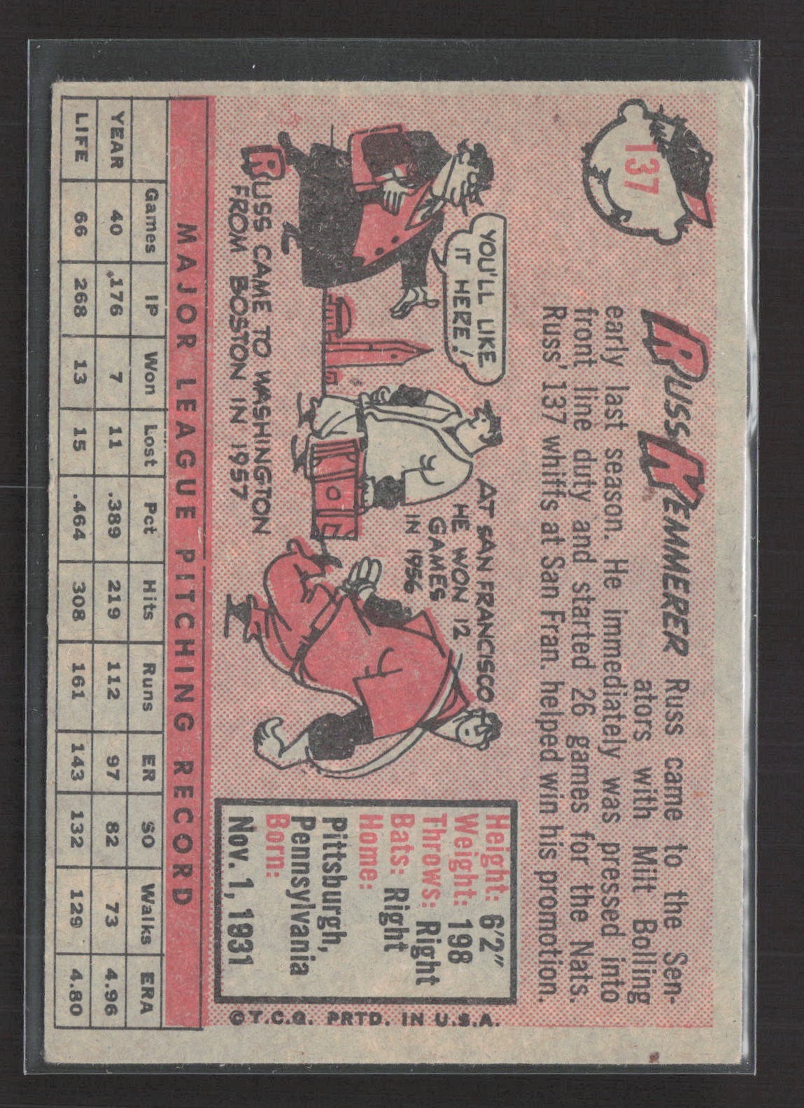 1958 Topps - Russ Kemmerer #137