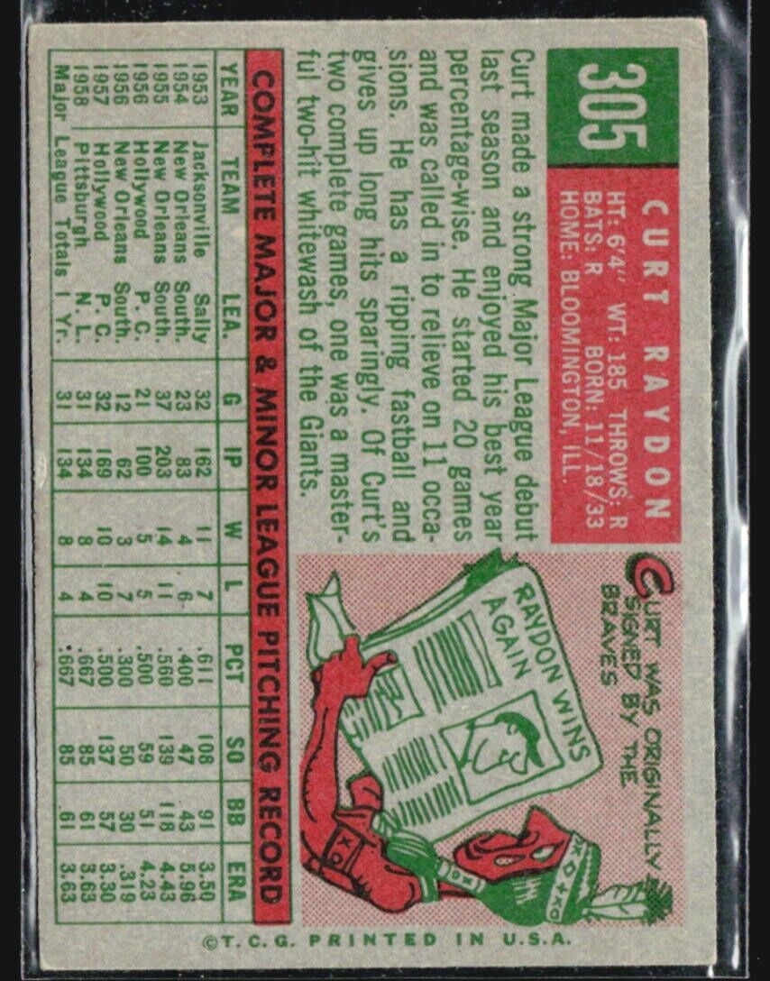 1959 Topps - #305 Curt Raydon (RC)