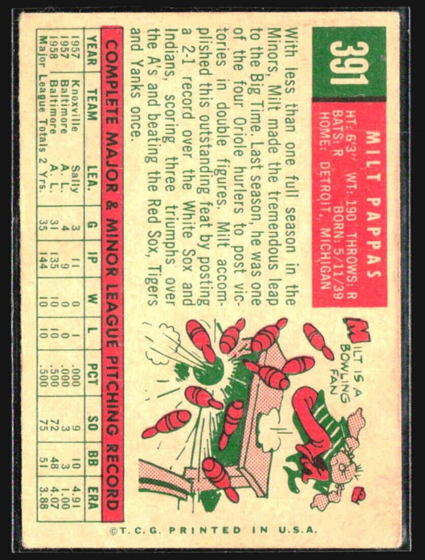 1959 Topps - #391 Milt Pappas