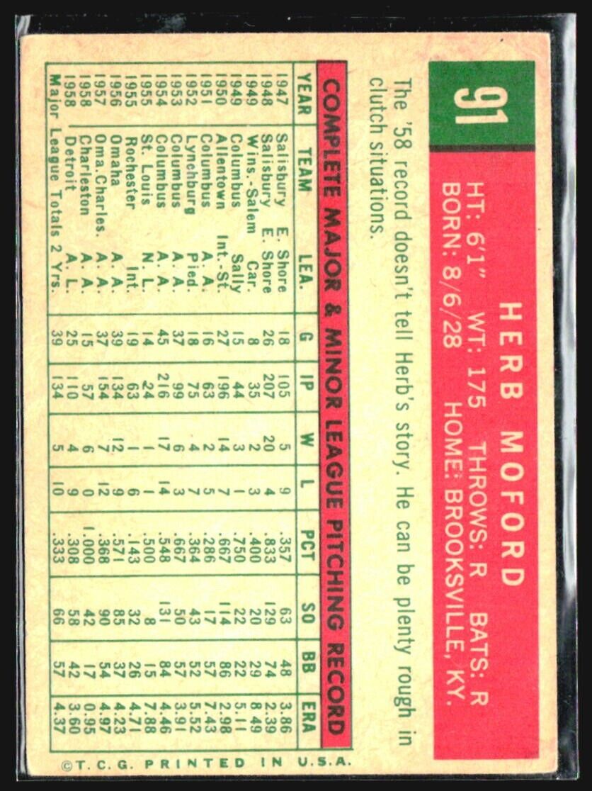 1959 Topps - #91 Herb Moford (RC)