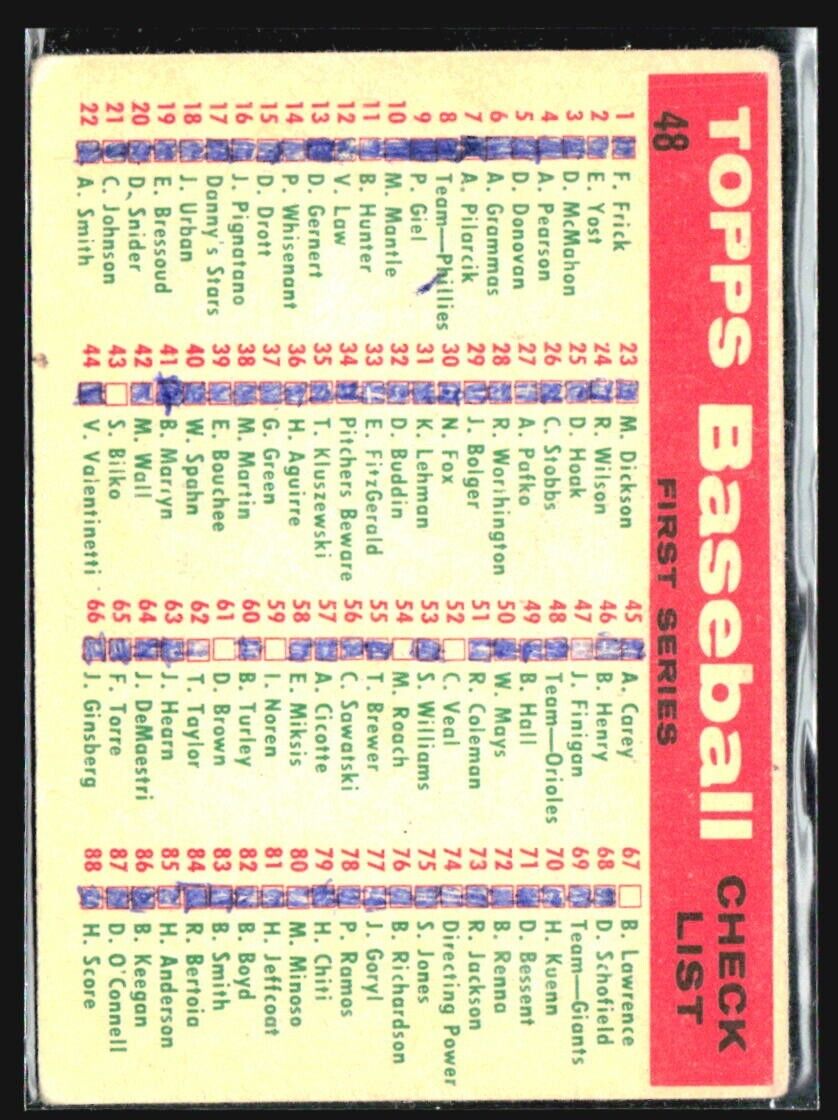 1959 Topps - First Series Checklist #48 Baltimore Orioles
