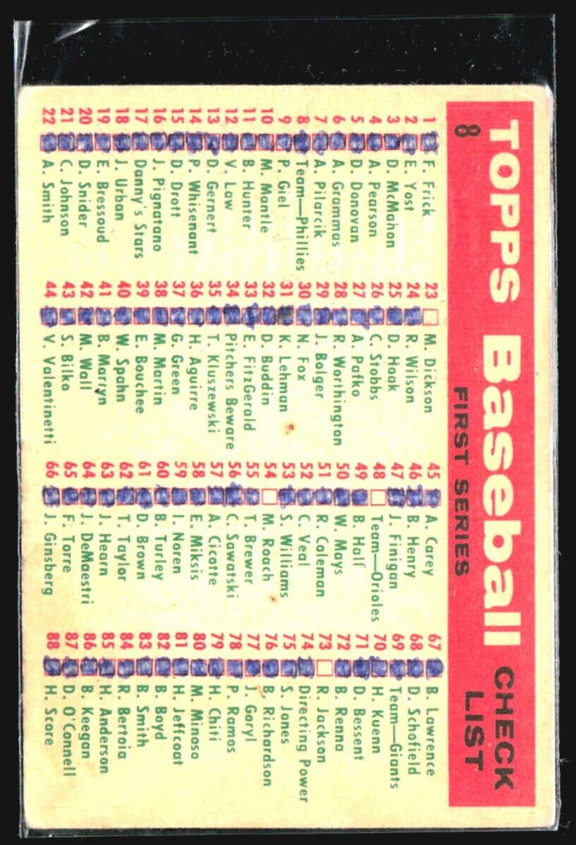 1959 Topps - First Series Checklist #8 Philadelphia Phillies
