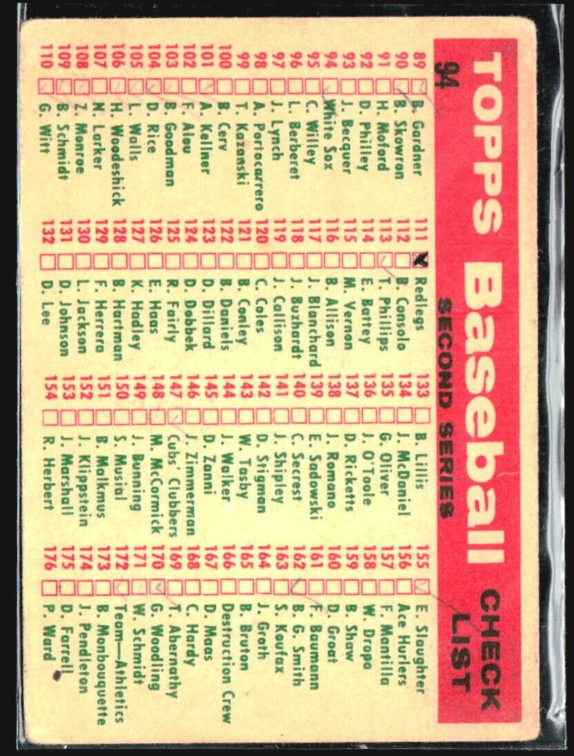 1959 Topps - Second Series Checklist #94 Chicago White Sox