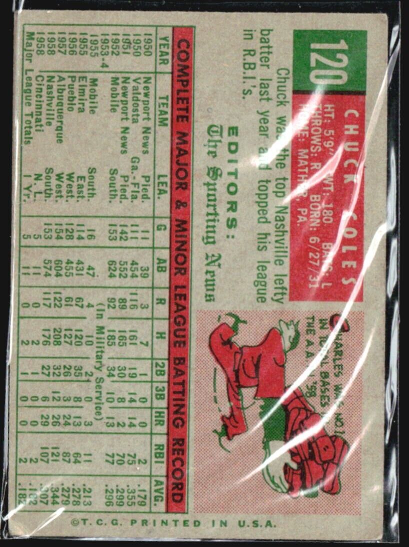 1959 Topps - Sporting News Rookie Stars #120 Chuck Coles (RC)