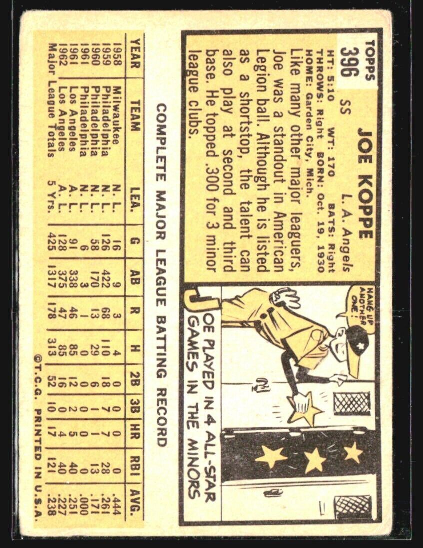 1963 Topps - #396 Joe Koppe