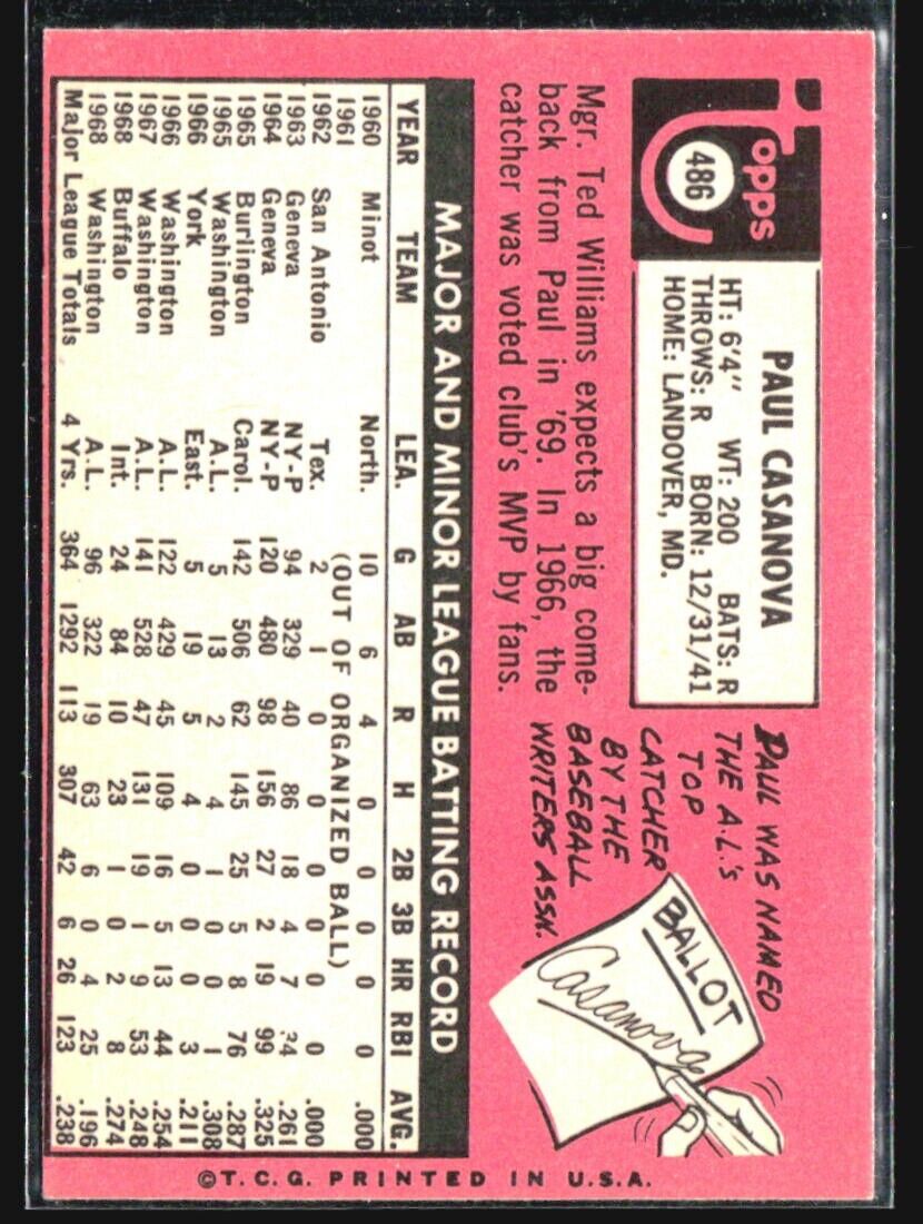 1969 Topps - #486 Paul Casanova