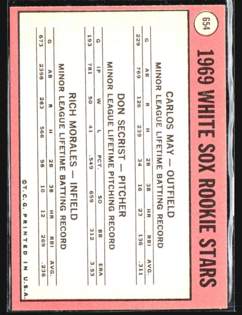 1969 Topps - High # #654 Carlos May, Rich Morales, Don Secrist (RC)