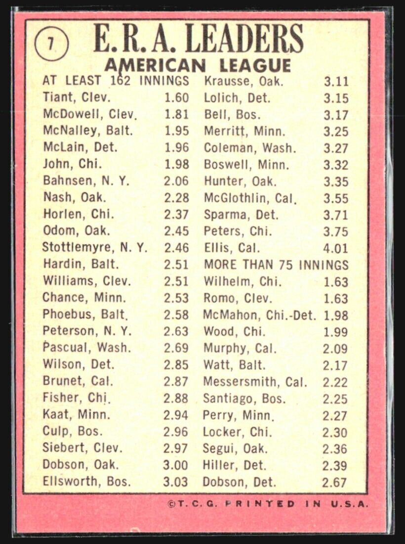 1969 Topps - League Leaders #7 Luis Tiant, Sam McDowell, Dave McNally