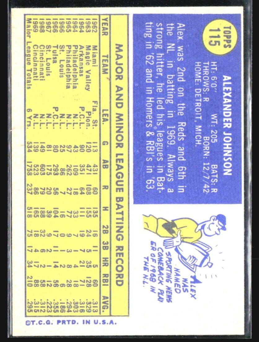 1970 Topps - #115 Alex Johnson