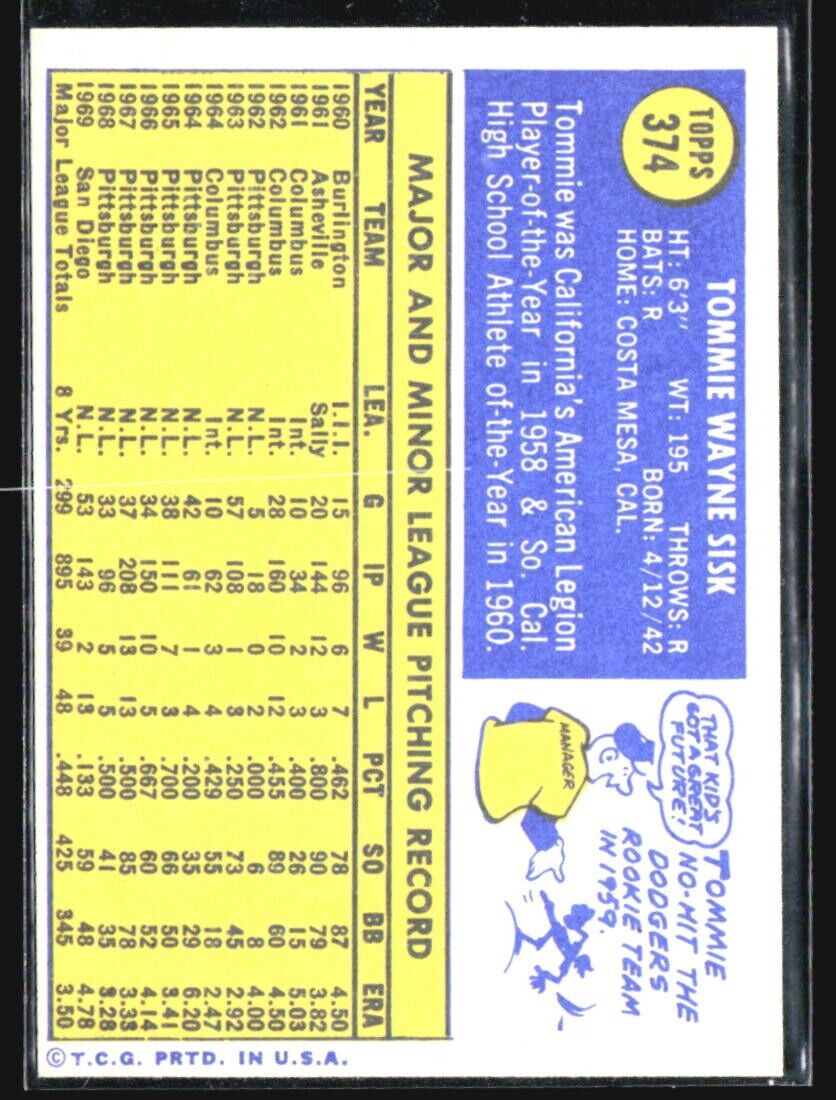 1970 Topps - #374 Tommie Sisk