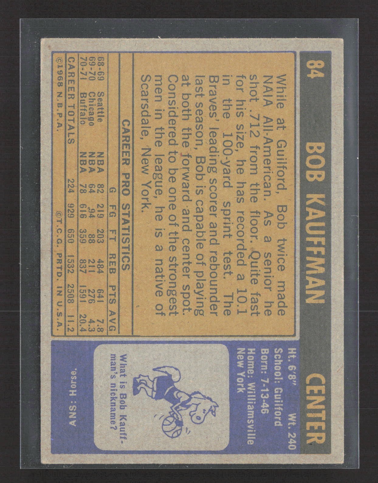 1971-72 Topps - Bob Kauffman #84