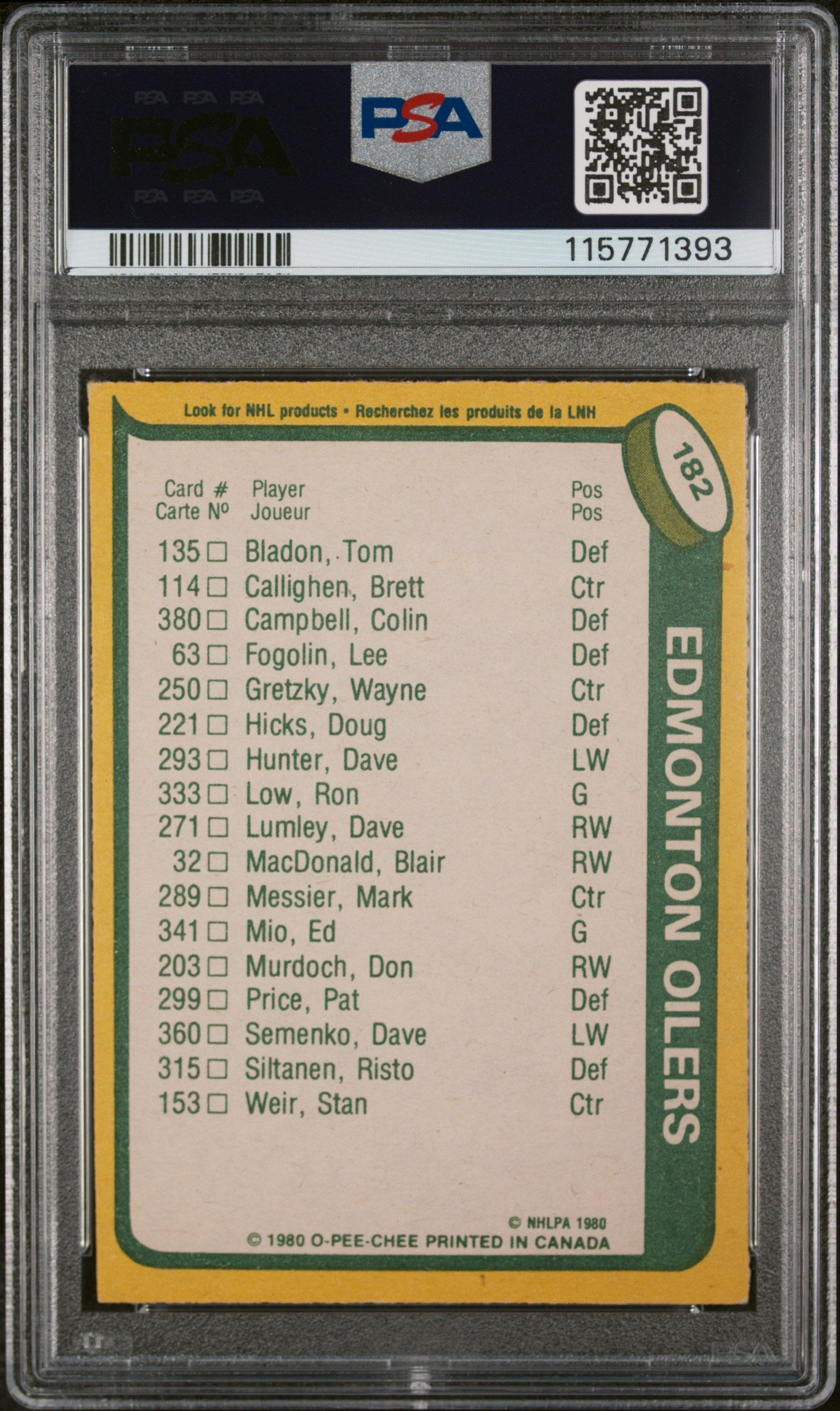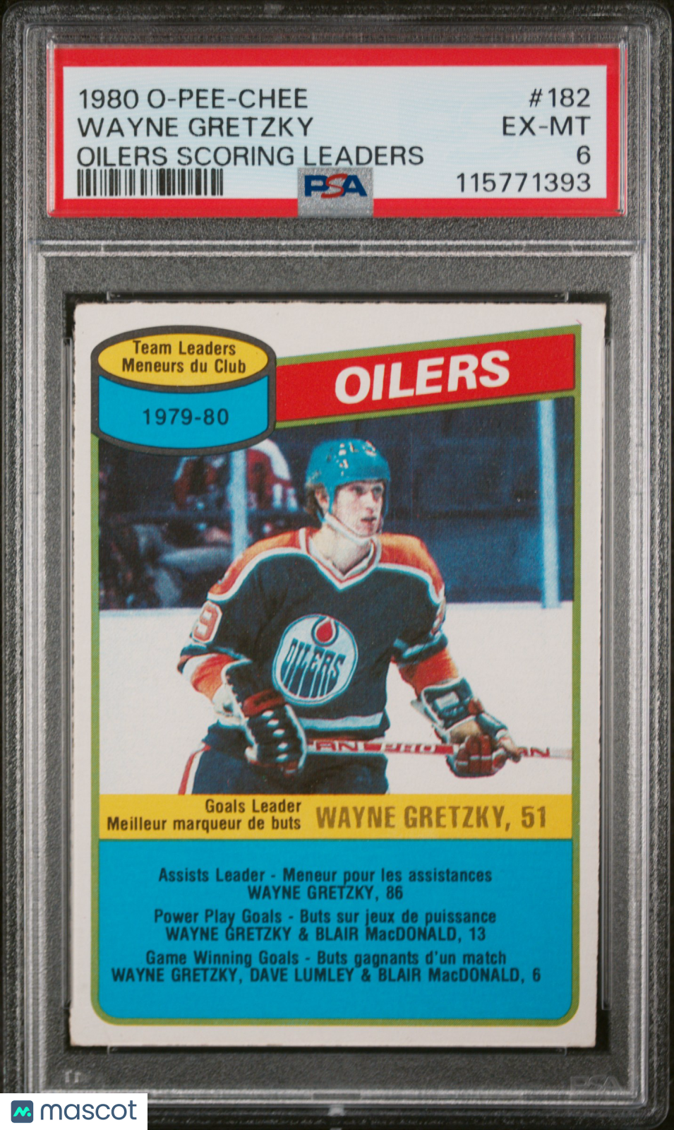 1980 O-Pee-Chee Wayne Gretzky #182 Oilers Scoring Leaders PSA 6