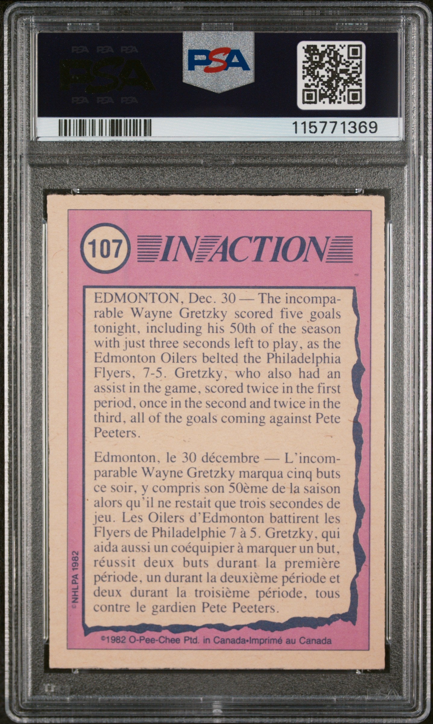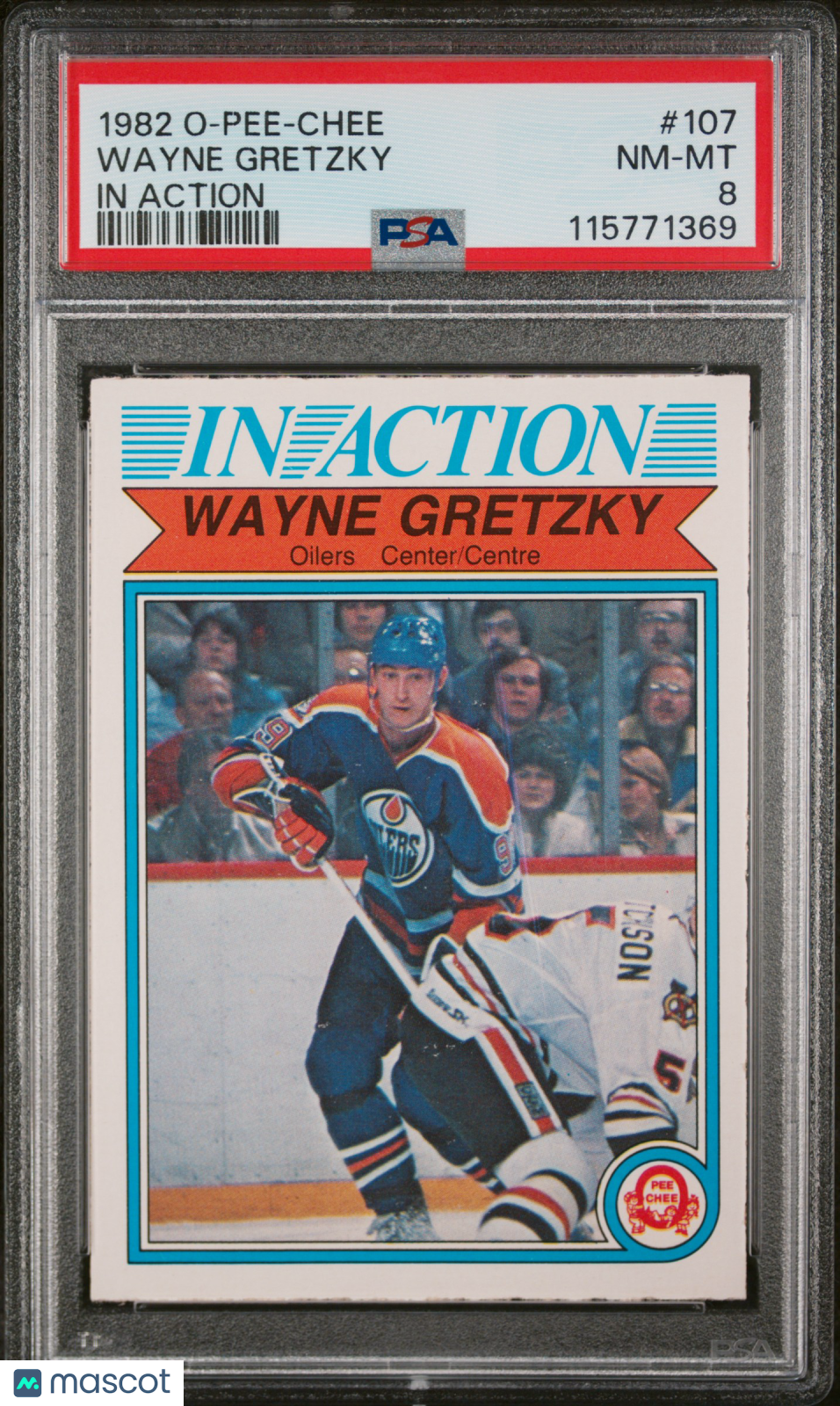 1982 O-Pee-Chee Wayne Gretzky #107 In Action PSA 8