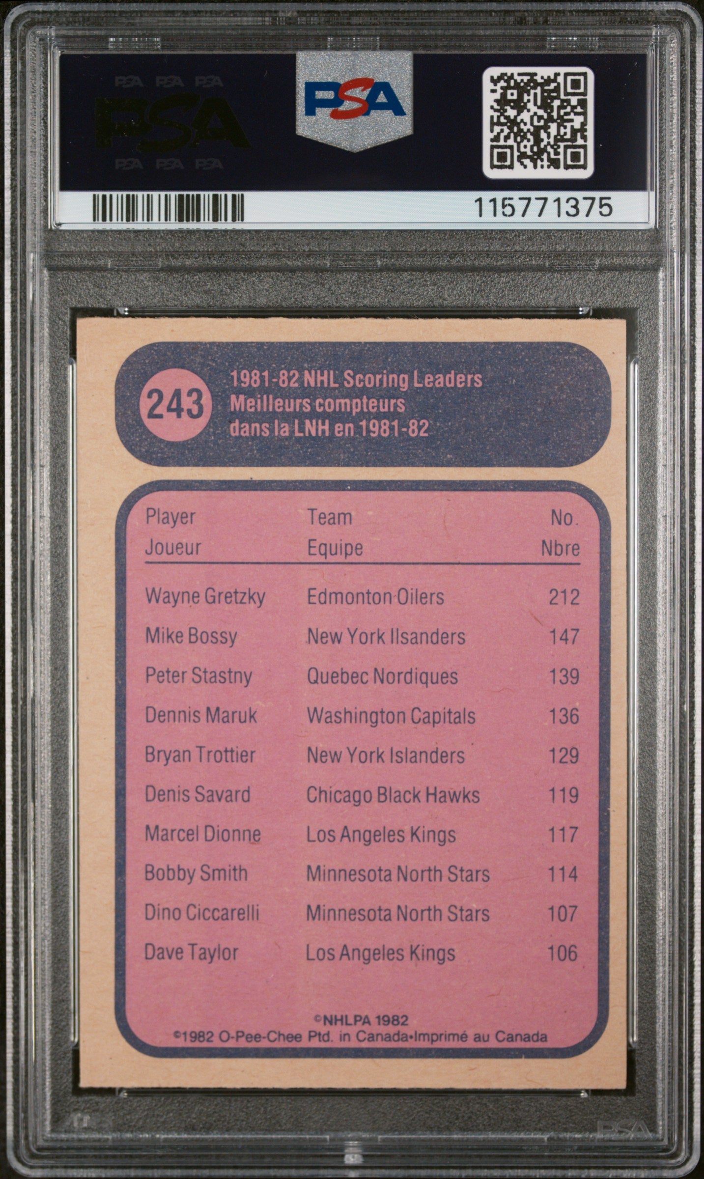 1982 O-Pee-Chee Wayne Gretzky #243 Scoring Leader PSA 7