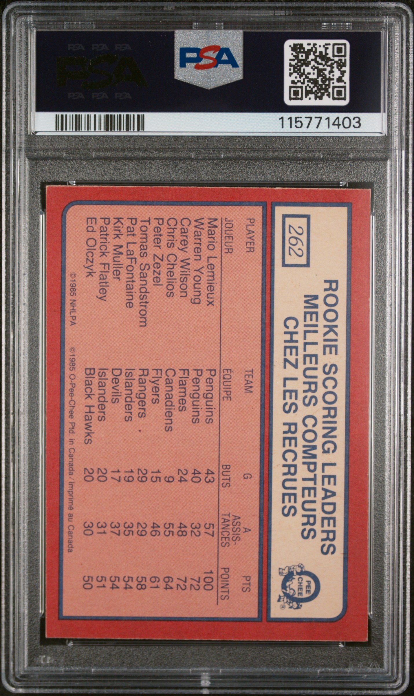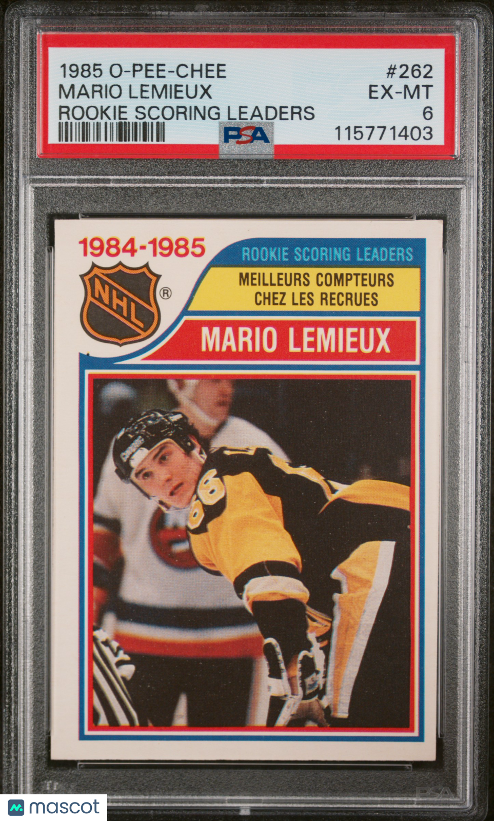 1985 O-Pee-Chee Mario Lemieux #262 Rookie Scoring Leaders PSA 6