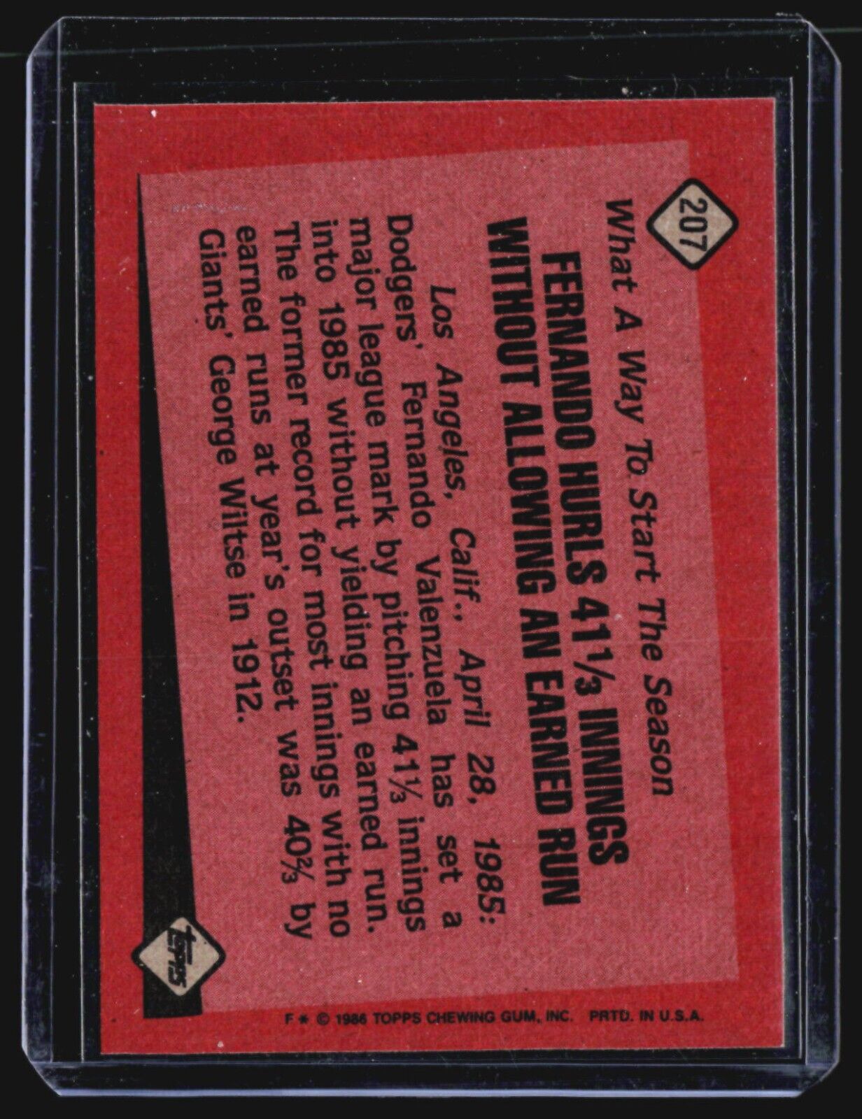 1986 Topps - Record Breaker #207 Fernando Valenzuela
