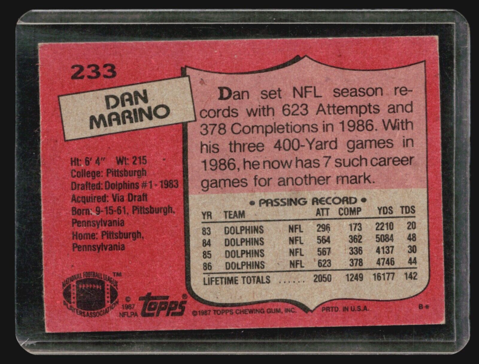 You are purchasing a 1987 Topps Dan Marino #233. You will receive the exact card in the photographs. Thank you... Read more