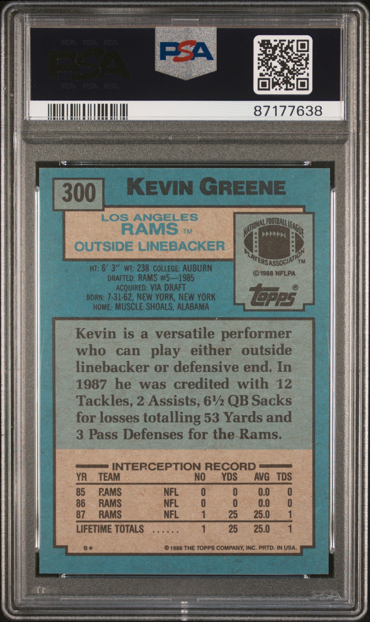 You are purchasing a 1988 Topps Kevin Greene #300 PSA 8. You will receive the exact item in the photographs.... Read more