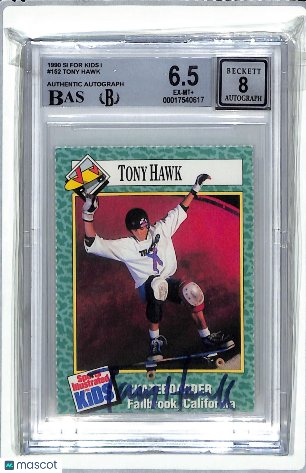 1990 Sports Illustrated for Kids I Tony Hawk #152 BGS 6.5 Auto 8