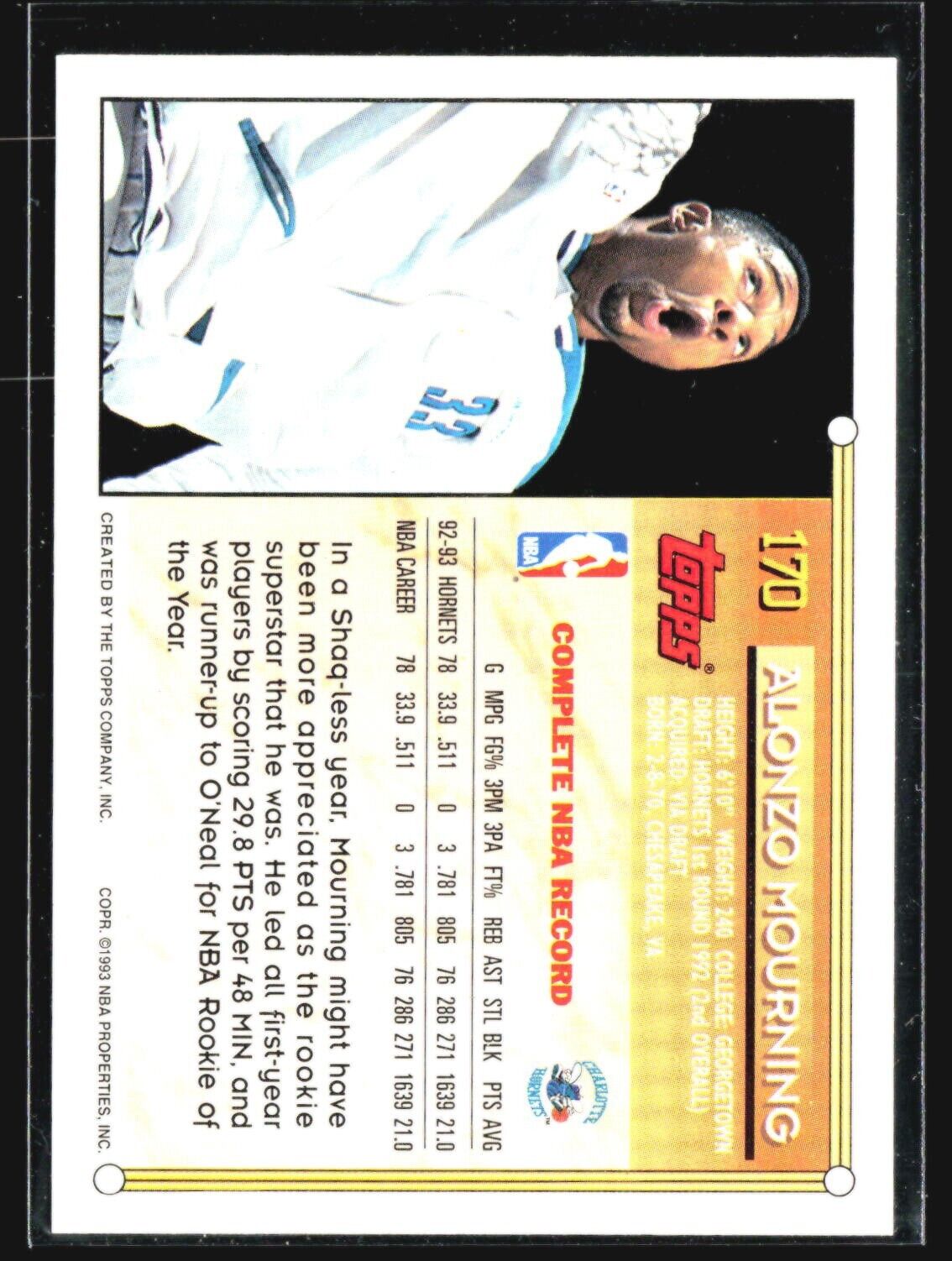 1993-94 Topps Alonzo Mourning #170