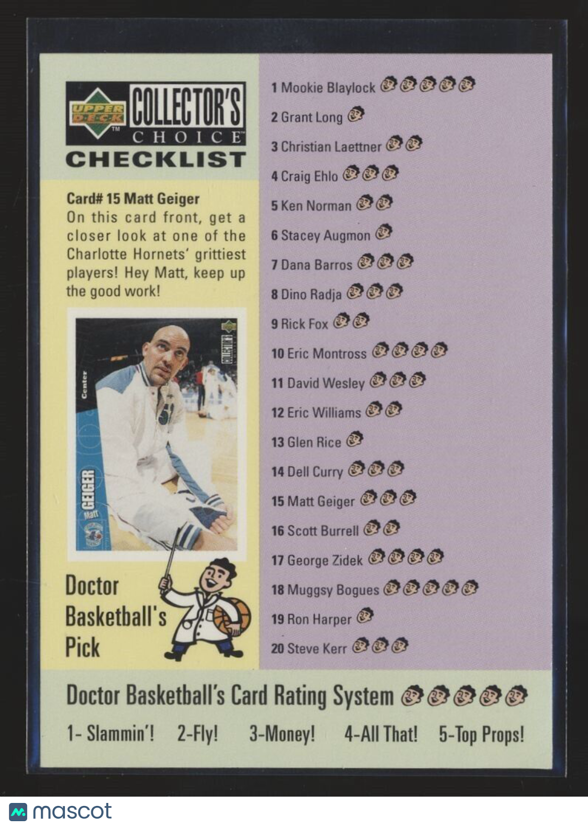 1995-96 UD COLLECTORS CHOICE CHECKLIST MATT GEIGER MICHAEL JORDAN