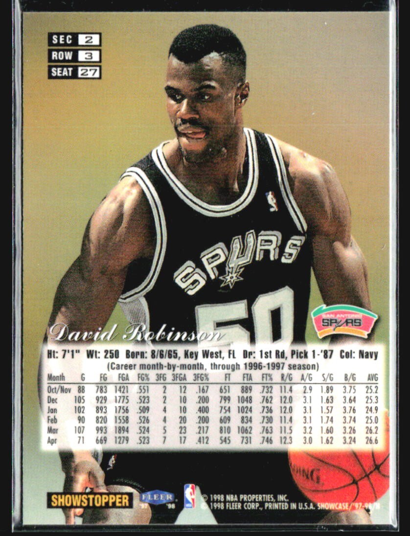 1997-98 Flair Showcase - David Robinson #27 Row 3